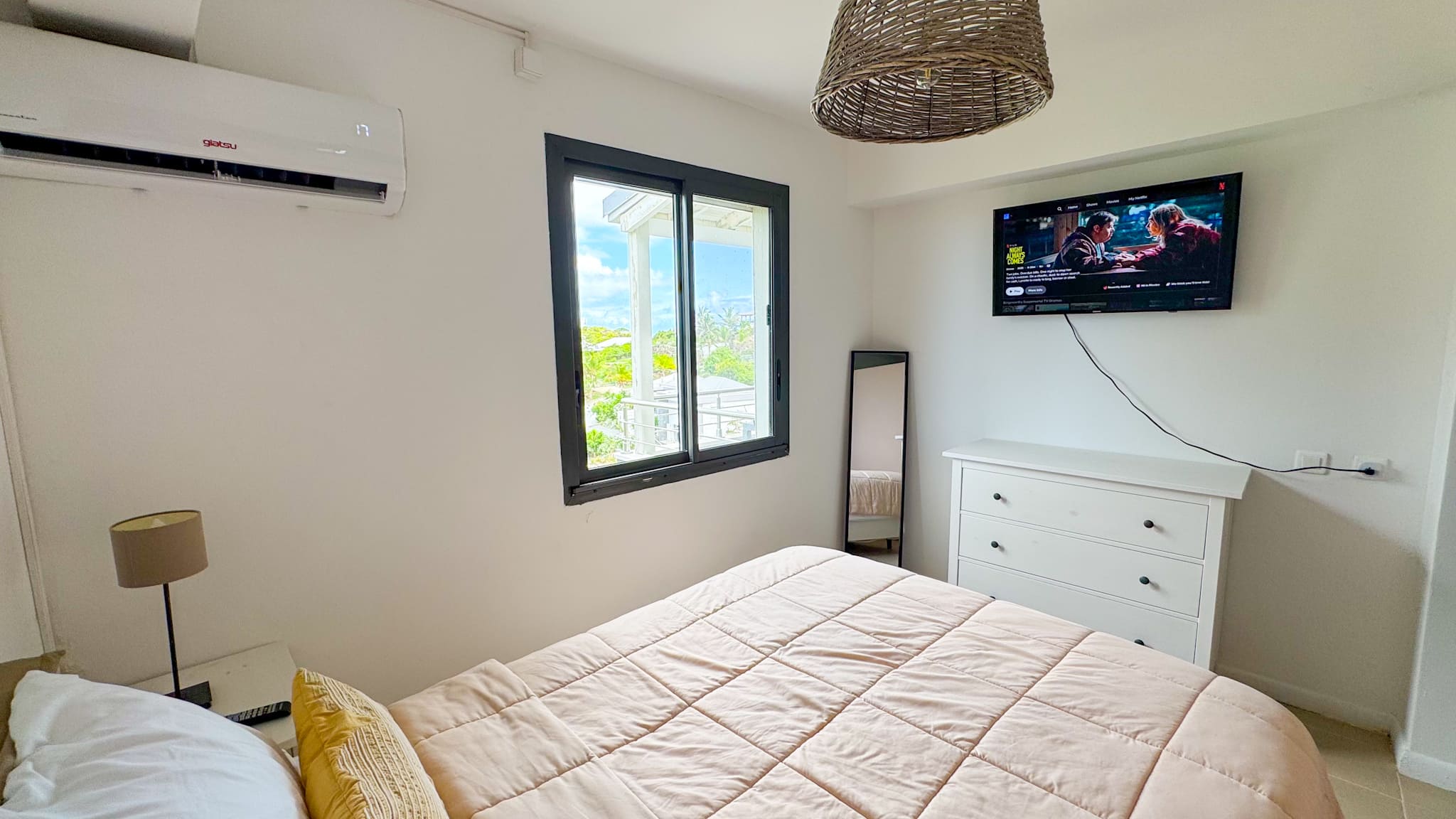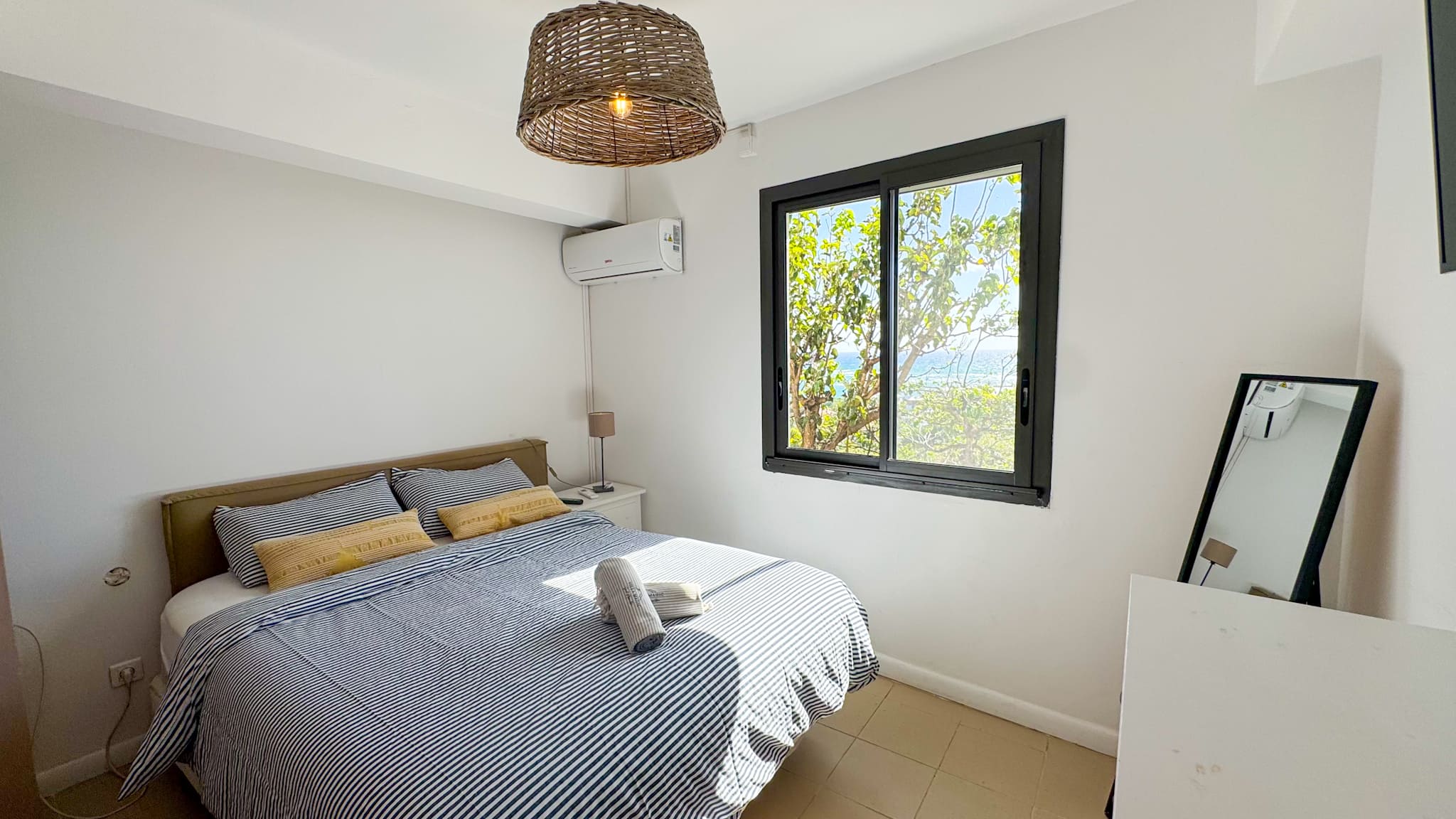 Bedroom equipped with air conditioning.